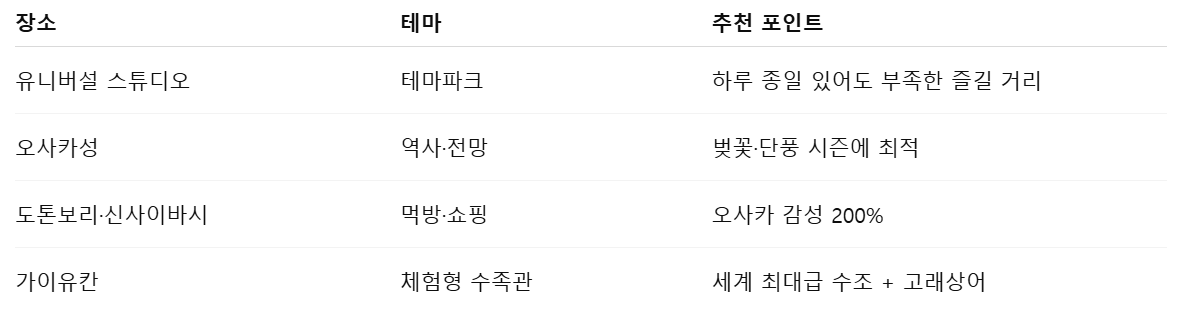 🔍 요약 정리 – 오사카 여행 1부 추천 명소